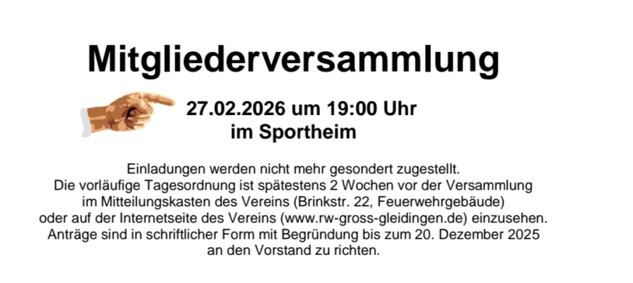 Herzlich willkommen auf der Webseite des SV Rot-Weiß Gr. Gleidingen e.V.. Hier erhälst du Informationen rund um den Verein und seine Aktivitäten. Du kannst dich über die einzelnen Sparten informieren und mit uns Kontakt aufnehmen. Wir freuen uns von dir zu hören.